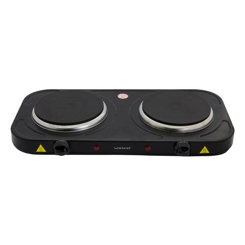 Anafe eléctrico winco de 2 placas, regulador de temperatura, termostato automático, placa calentadora de 155 mm. de diámetro, protección por sobre calentamiento, indicador luminoso de encendido, potencia: 1000W por placa.