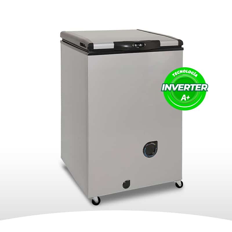Freezer Full-4 Funciones de Frío. Color Gris Plata. Nuevo tablero, Un Canasto, Ruedas Giratorias de alta resistencia, Interior en chapa pre pintada blanca, Desagote Frontal. Refrigerante R600a. Tecnología Inverter. Eficiencia Energética A+.