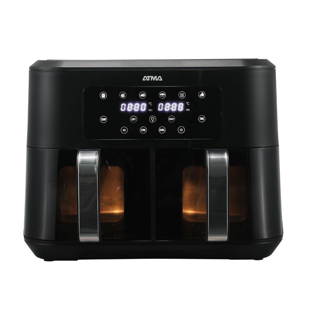 La freidora de aire ATMA FRD248AP es perfecta para quienes buscan opciones prácticas y saludables en la cocina. Con una potencia de 2200W y una capacidad total de 8,5 litros divididos en dos canastos de 4,25 litros cada uno, permite preparar diferentes comidas al mismo tiempo.
